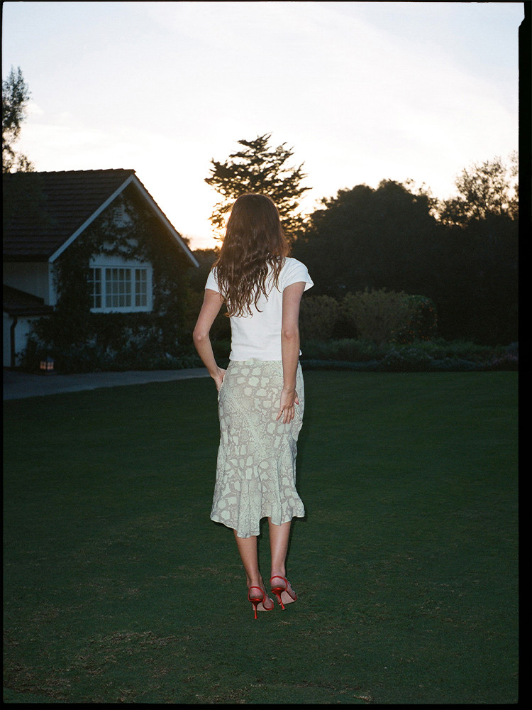 The Carmen – with its fluted hemline and timeless silhouette, this skirt brings to mind the charm of the beloved Naomi, but with a fresh, modern twist. The Carmen sits at mid-calf, flattering the figure with its subtle flair that adds movement making you feel like you could put a little cha cha into every step. Whether you're sipping cocktails under the afternoon sun or dancing the night away under city lights, this skirt has you covered. Pair it with a fitted knit for a polished winter look or a crisp white tee for effortless summer chic. The Carmen is your new go-to for any occasion – flirty, feminine, and ready for anything